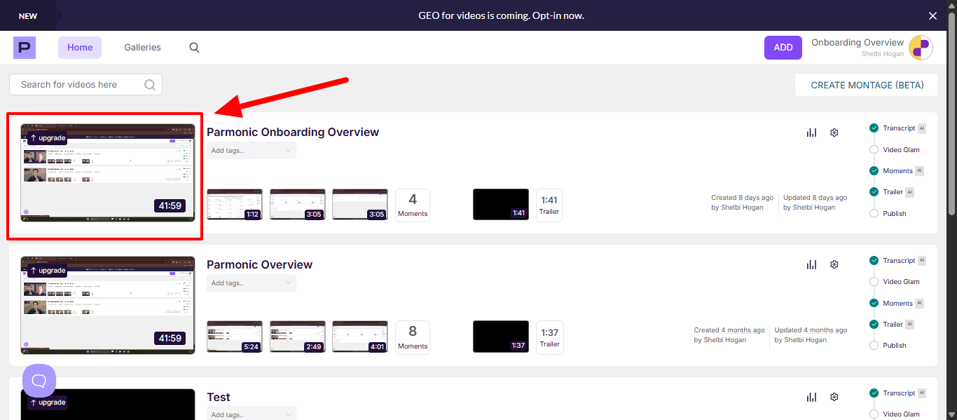 Step 1: Select the video from your account to which you wish to add subtitles