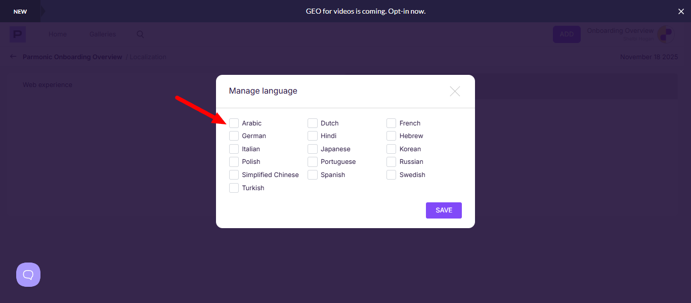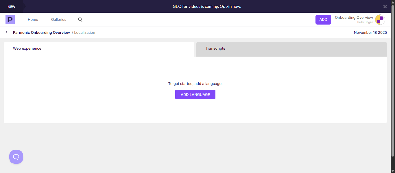Step 3: Select "Add Languages" and choose which languages you would like to be applied to your video.