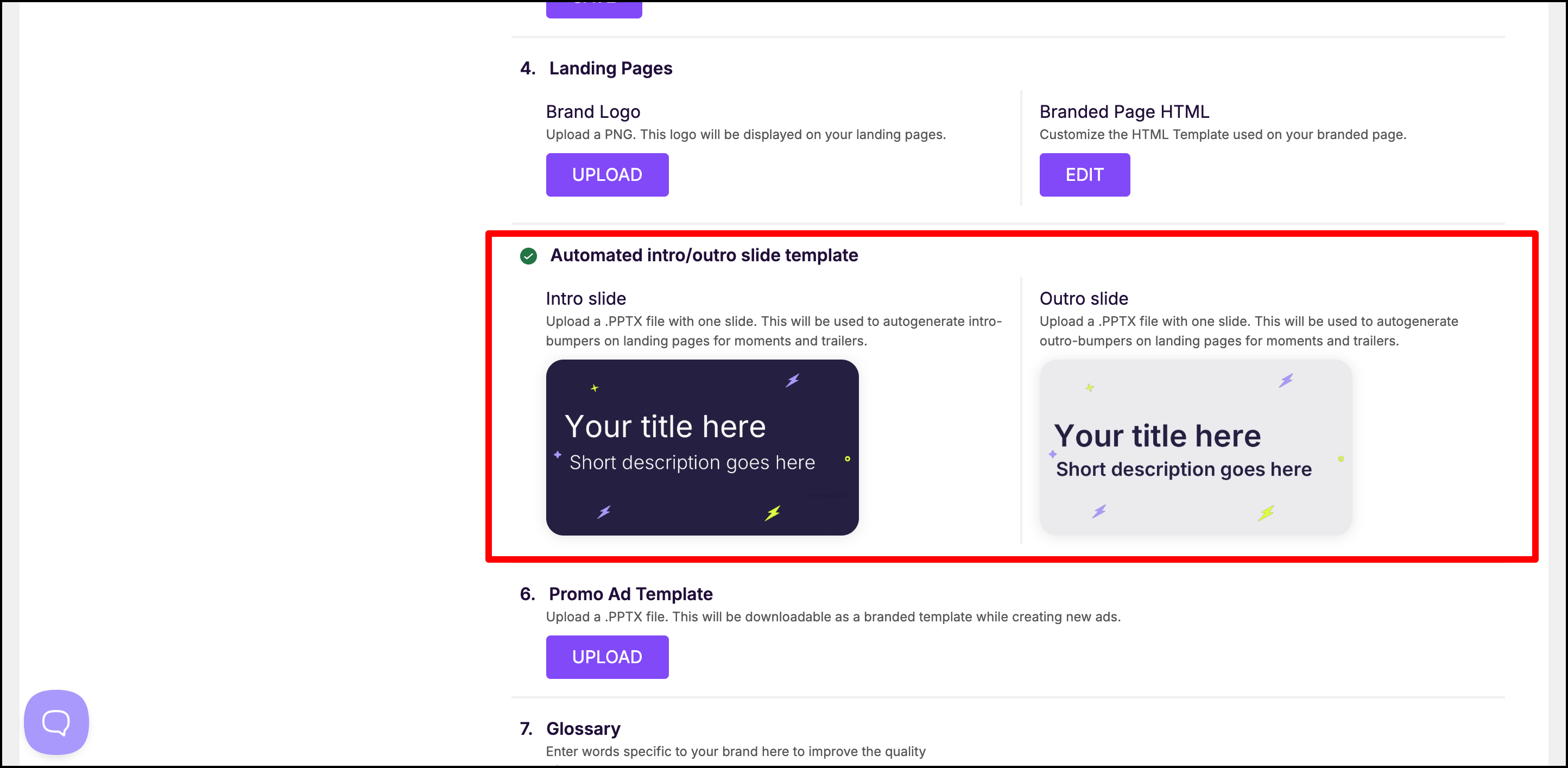 After successfully uploading both Intro and Outro bumpers to the brand settings -