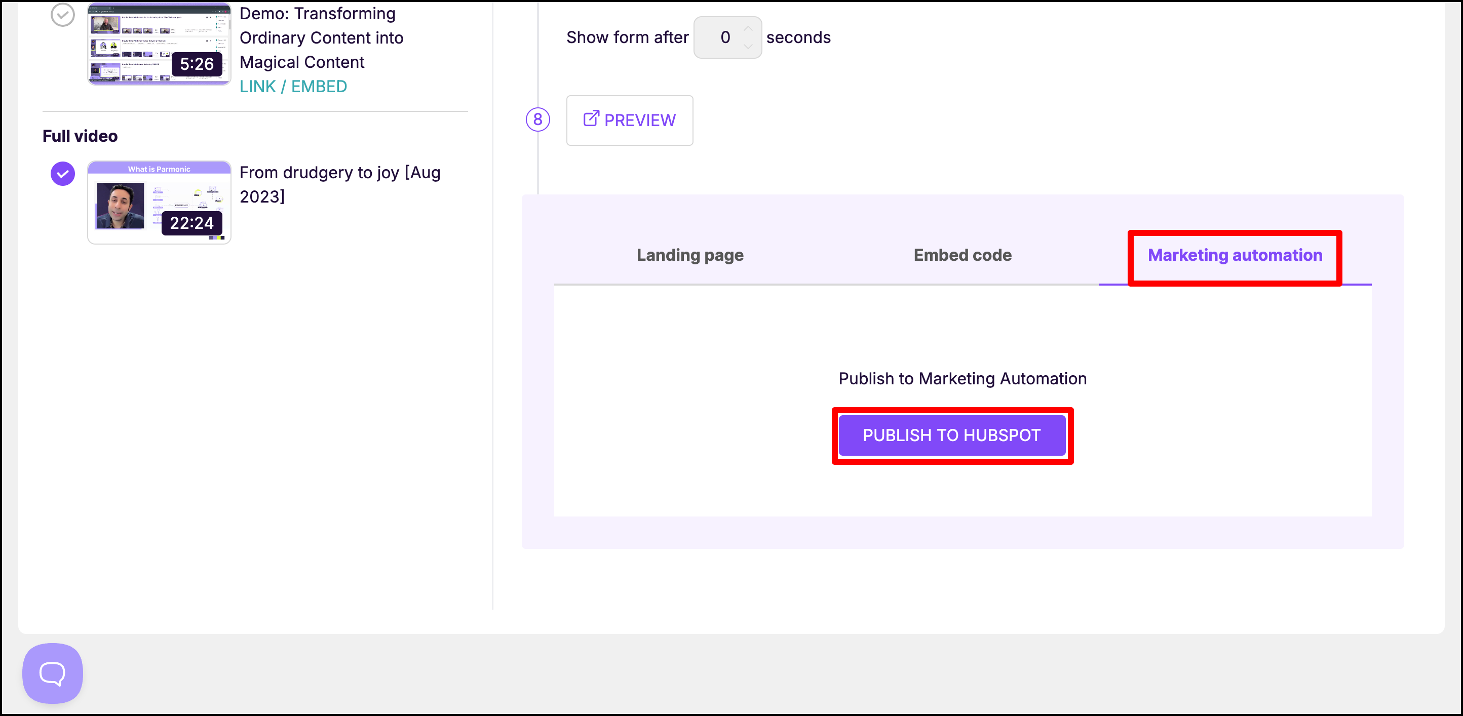 Step 4: Next, select the moments you want to include and click on 'Publish to Hubspot'.