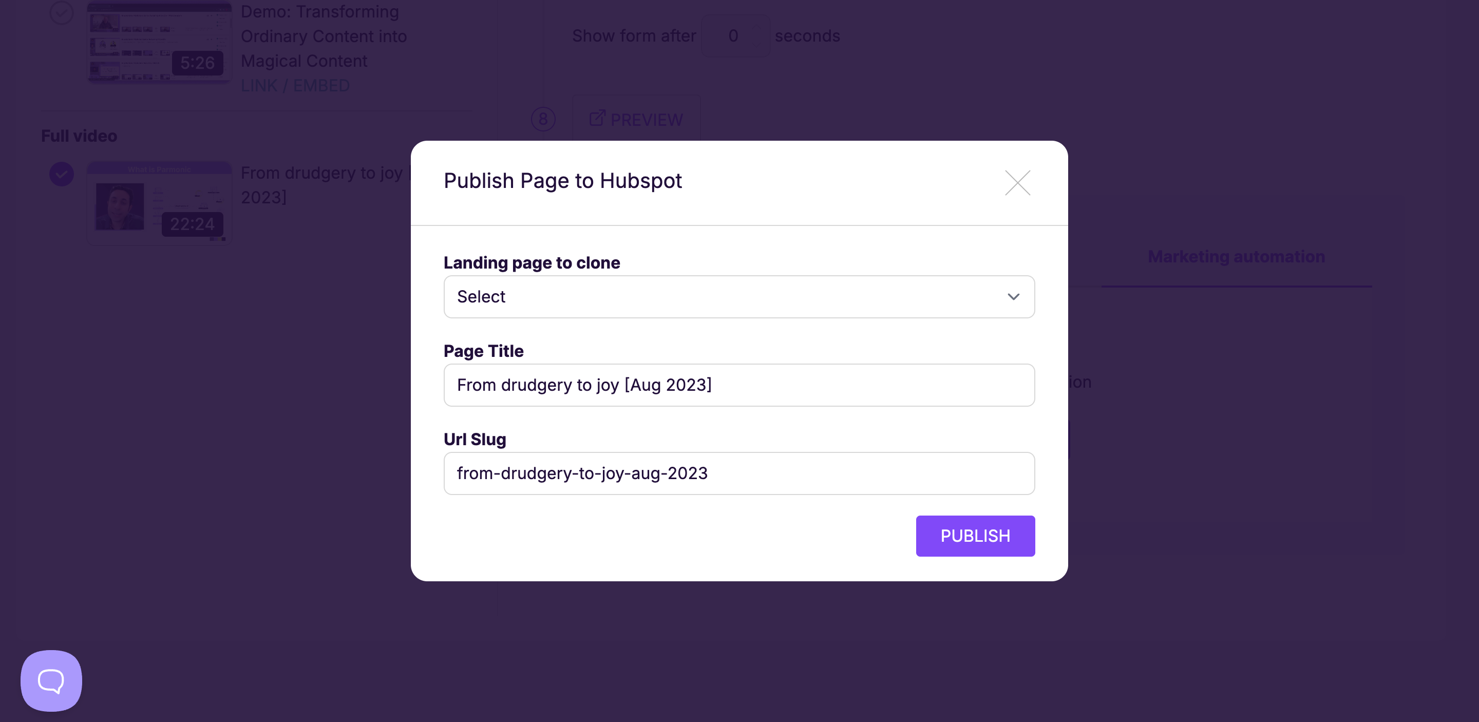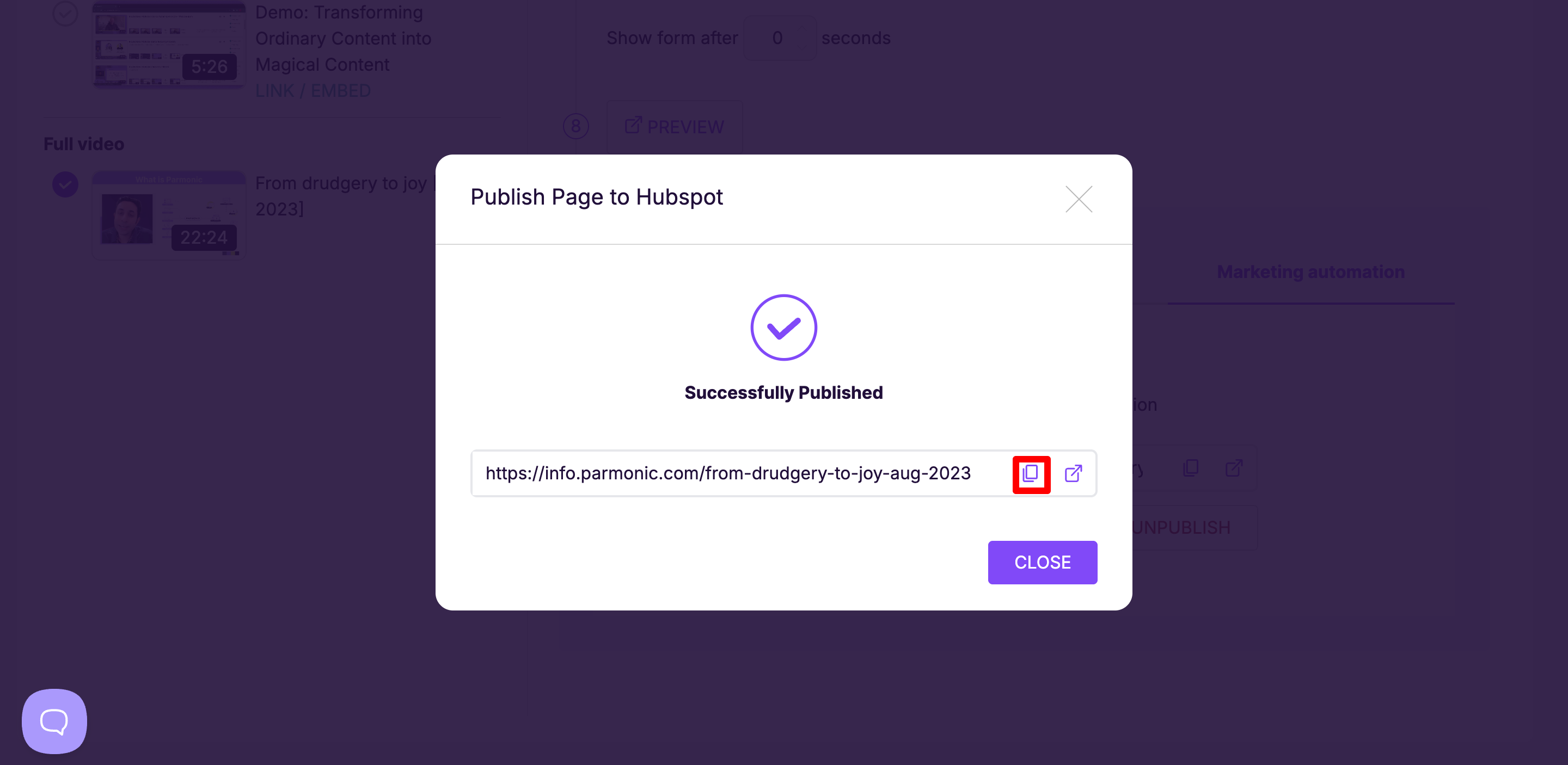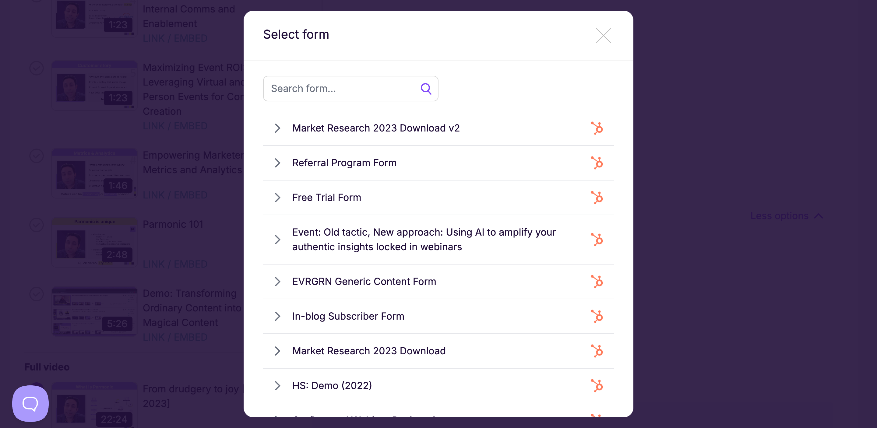 If your Parmonic account is linked up to your Hubspot account via our Marketing Connector, there's a quick way to enable a registration pop-up for that page's content. Here's how.