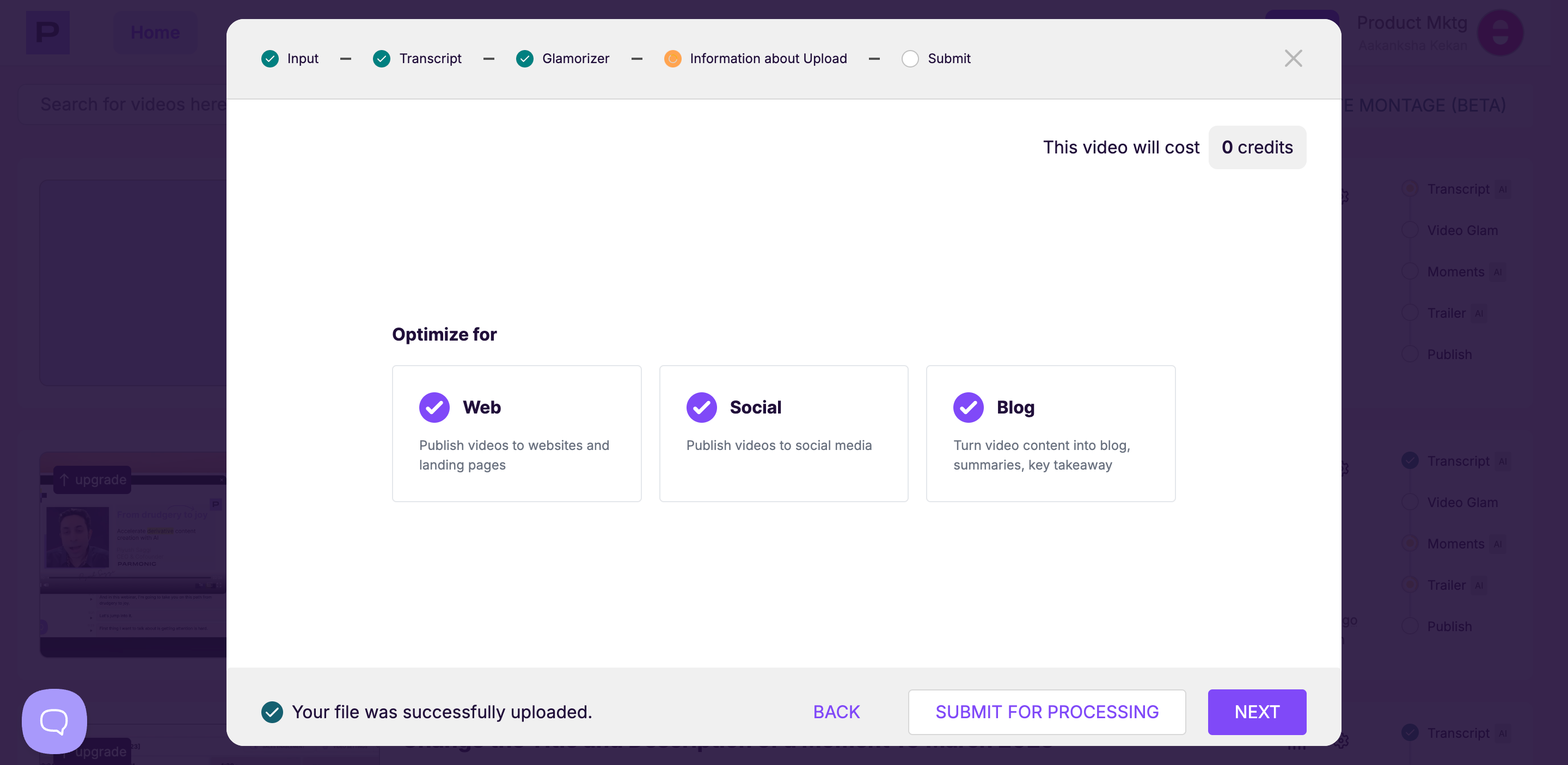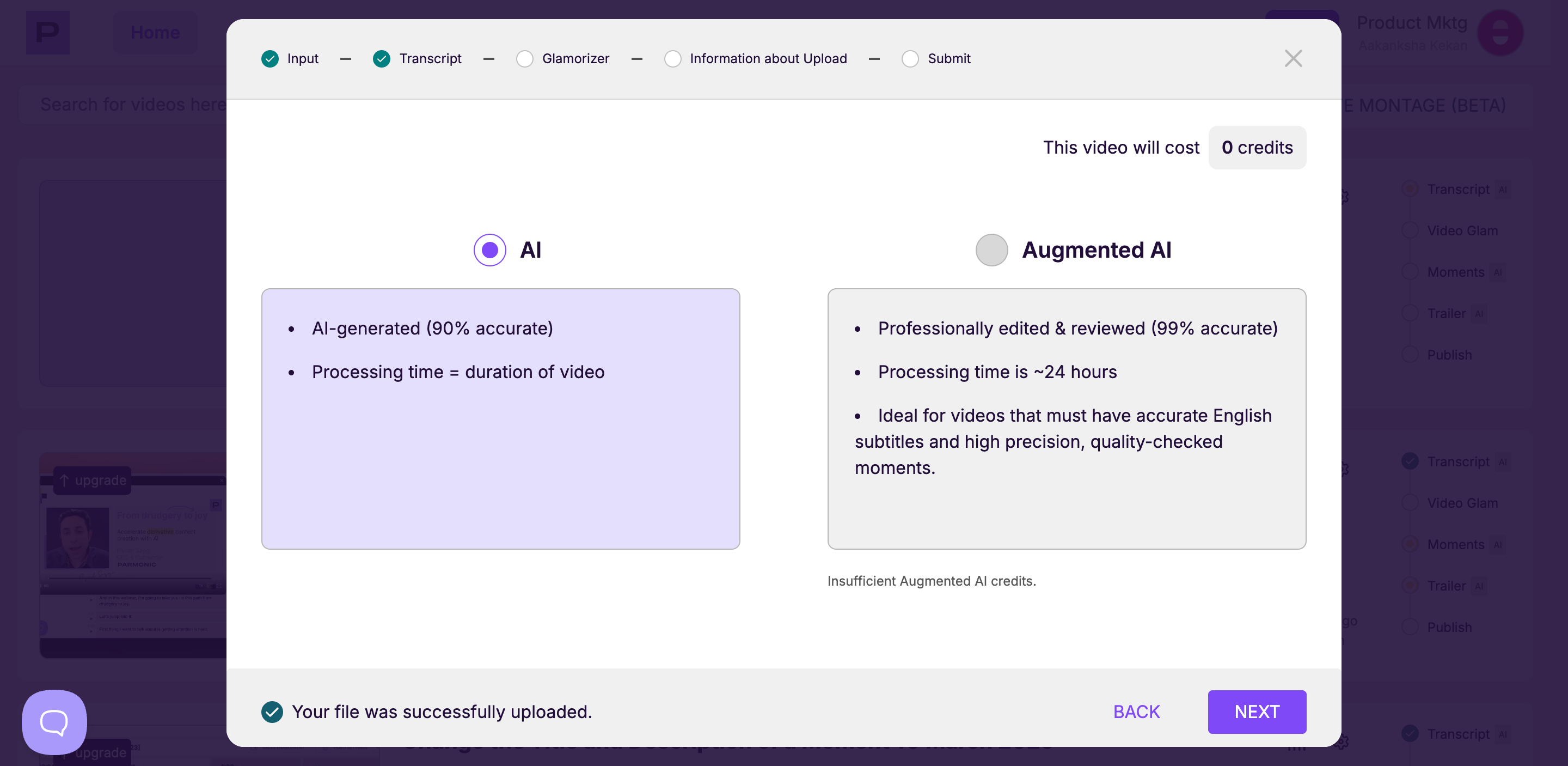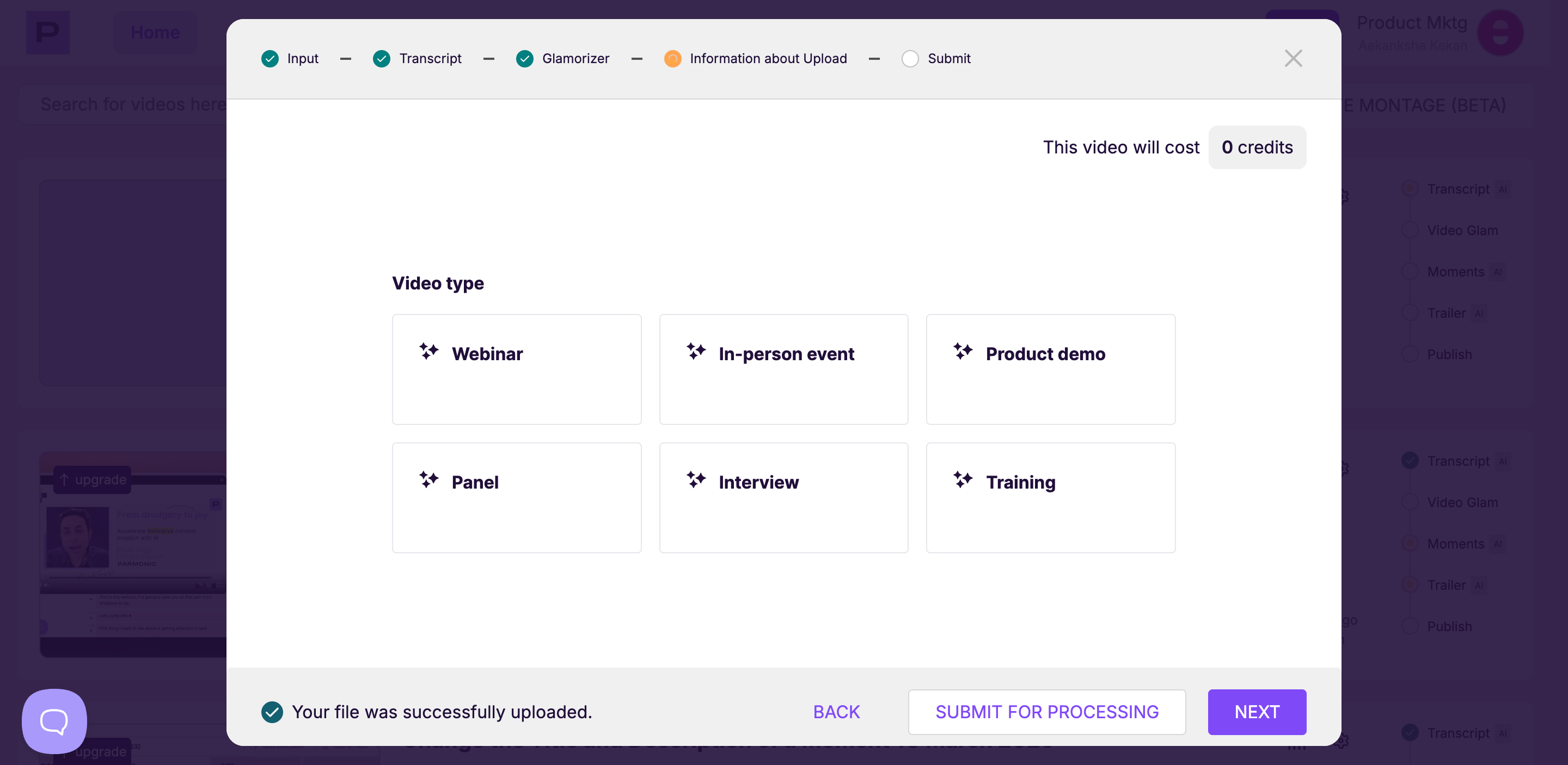 While your video is uploading, you can give AI additional information so that it creates moments tailored to your needs. To customize your moments and trailers, follow the steps here - https://help.parmonic.com/article/448-custom-moments-trailers