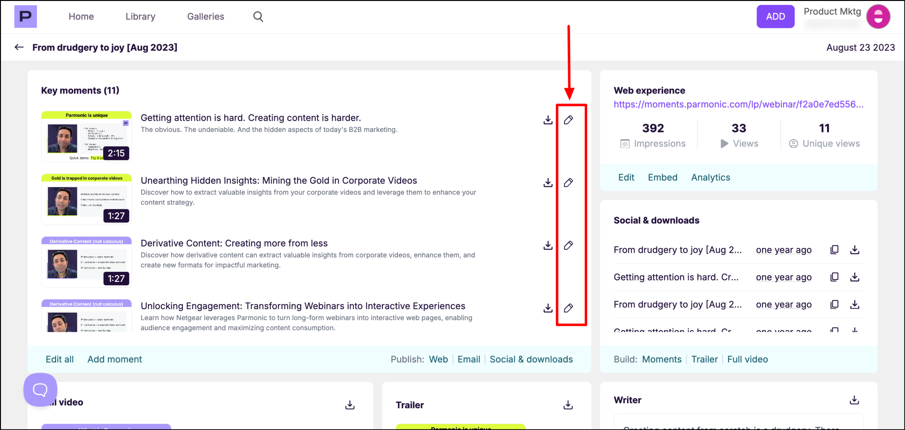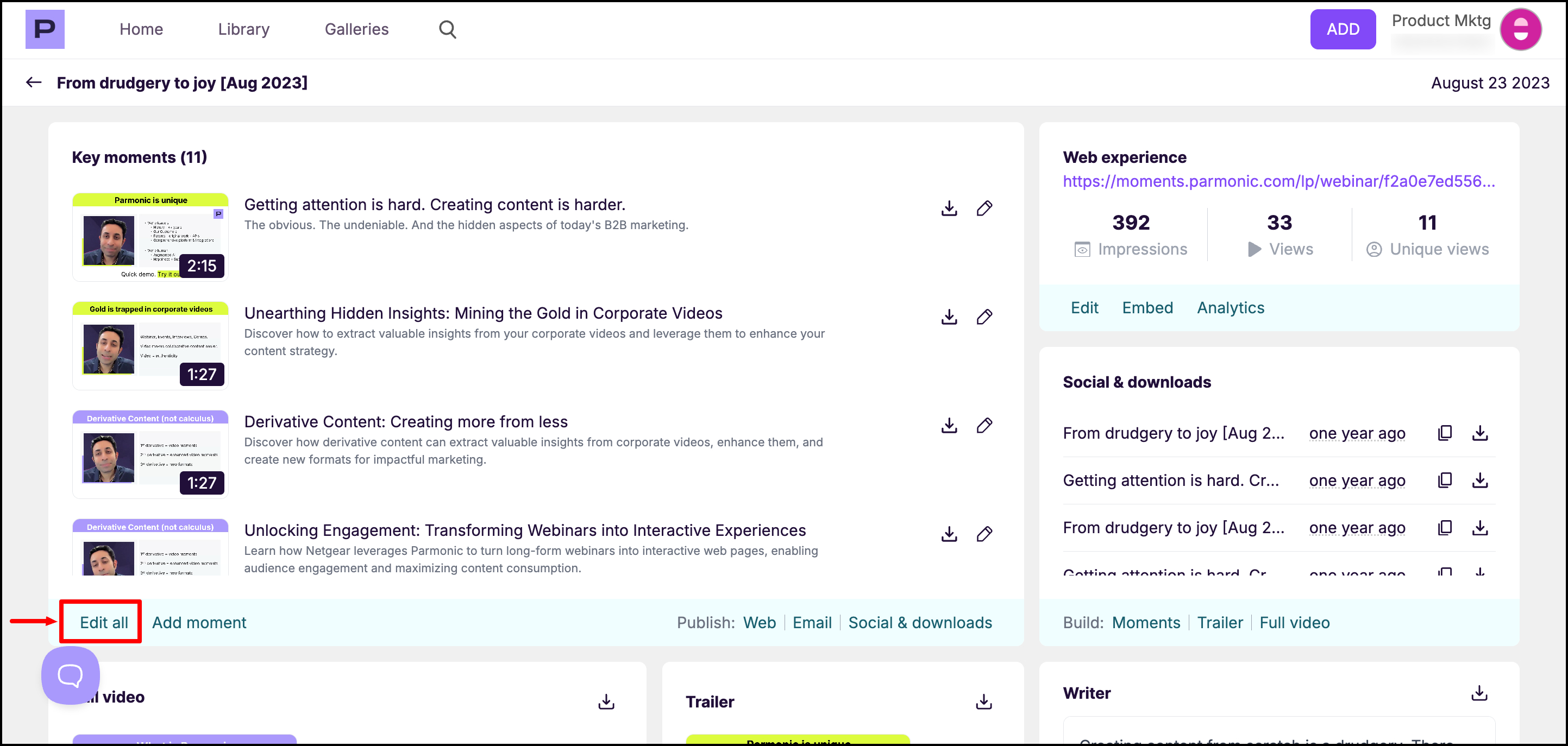 Step 2: To review and edit all the moments, click "Edit all" at the bottom of the Key Moments module.