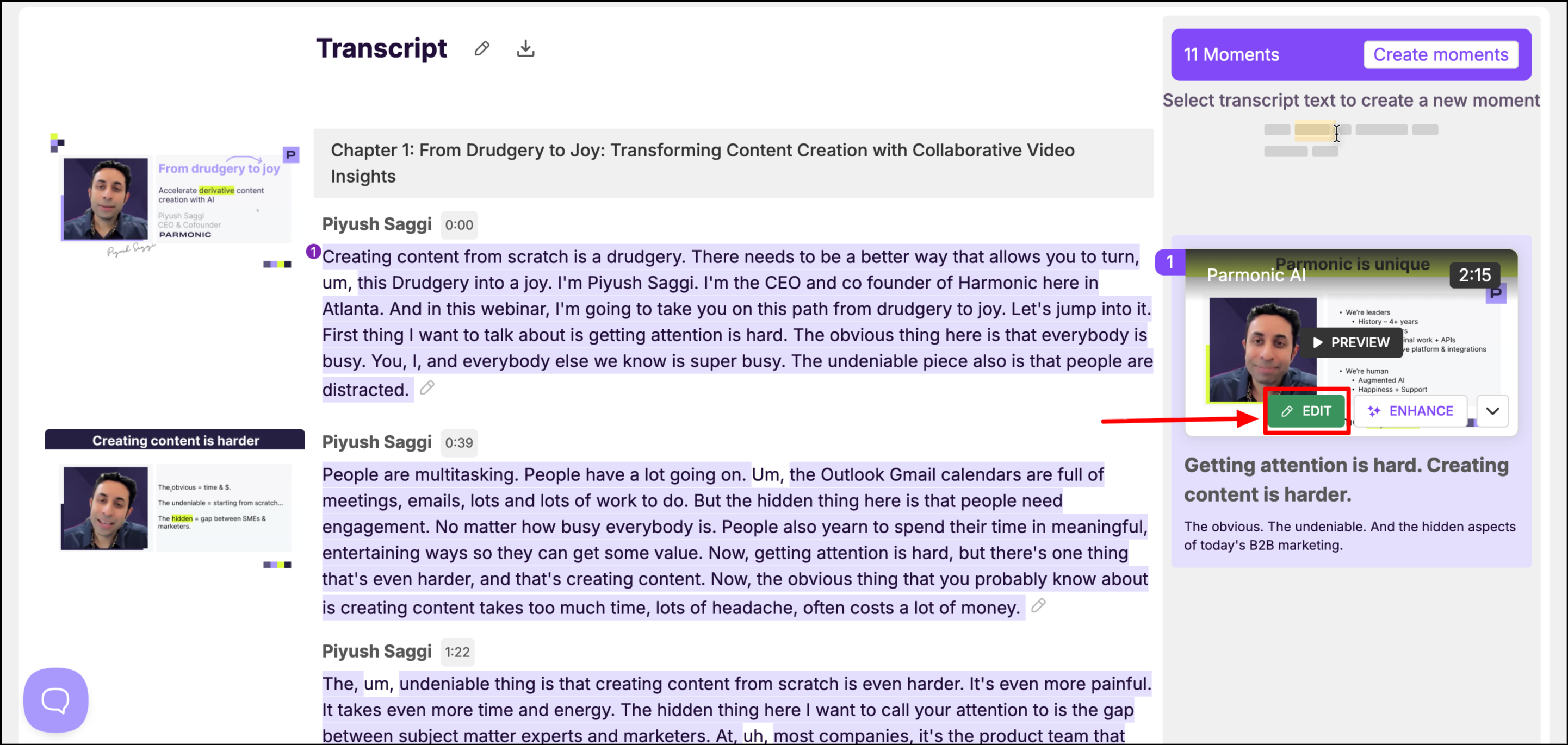 As usual, Parmonic is constantly updating and optimizing our tools to add efficiency to your workflow. You'll have more control than ever before to create Munchable Moments that viewers will eat up. Here's how it works: