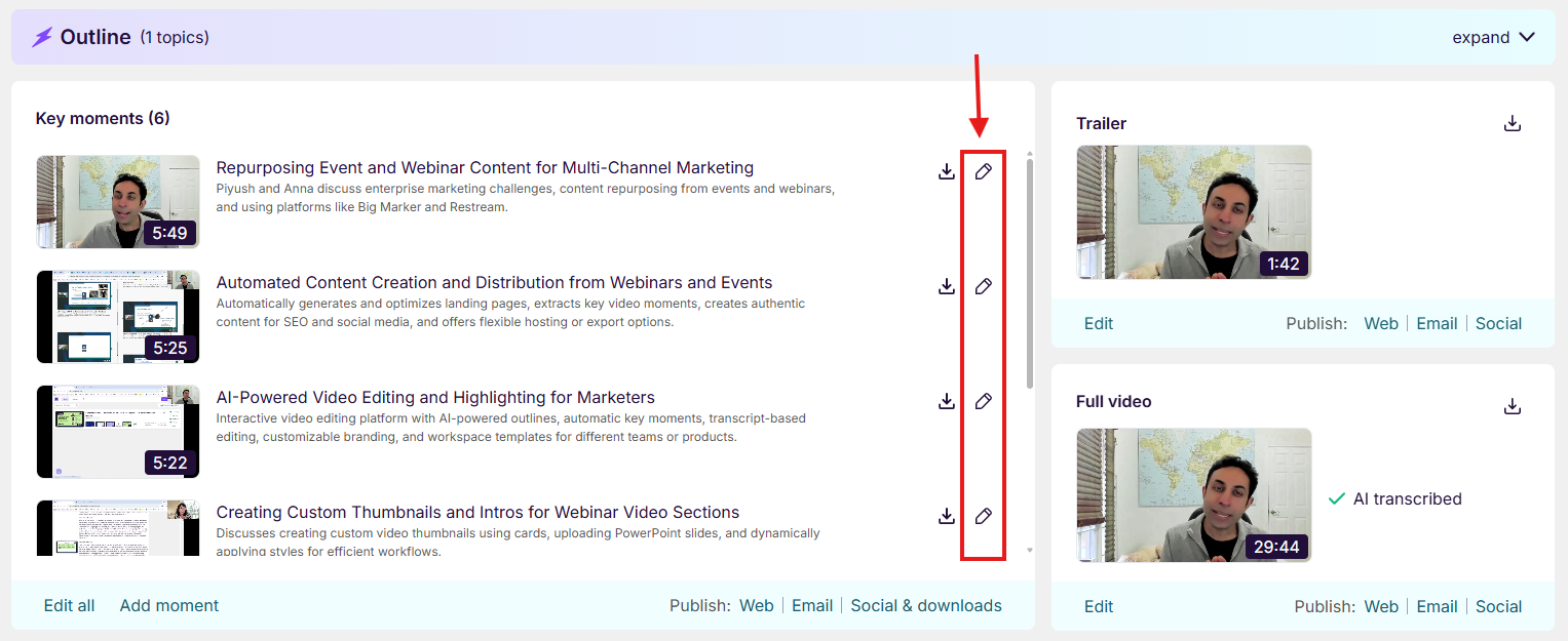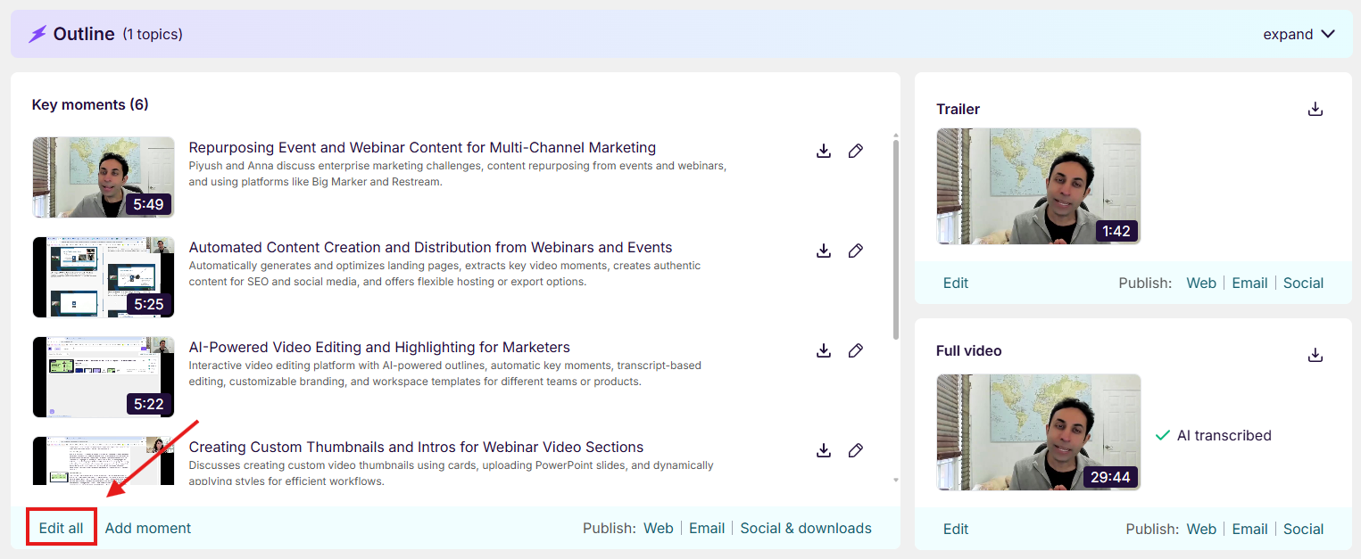 Step 2: To review and edit all the moments, click "Edit all" at the bottom of the Key Moments module.