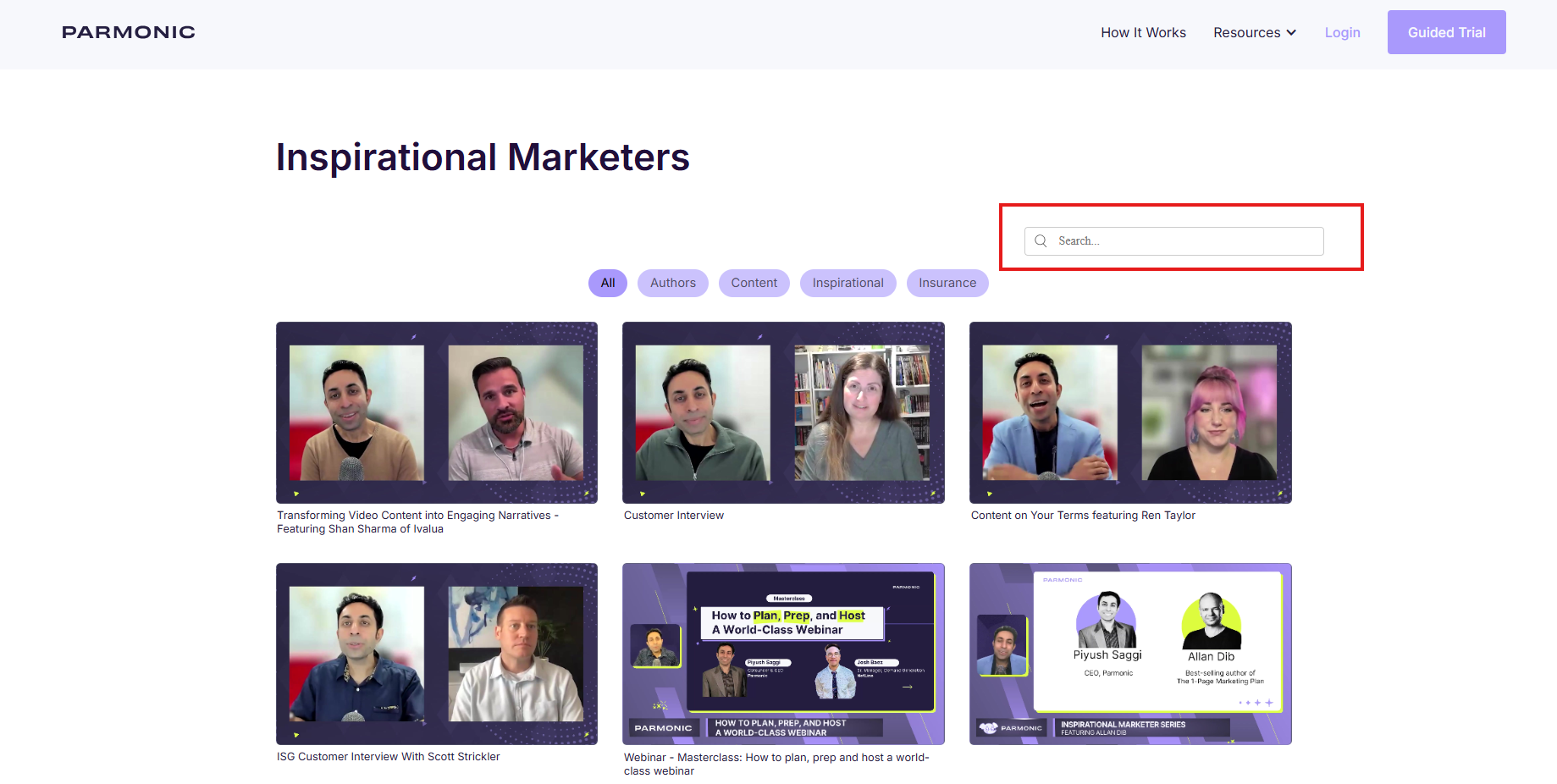 To quickly find a video, use the search bar.