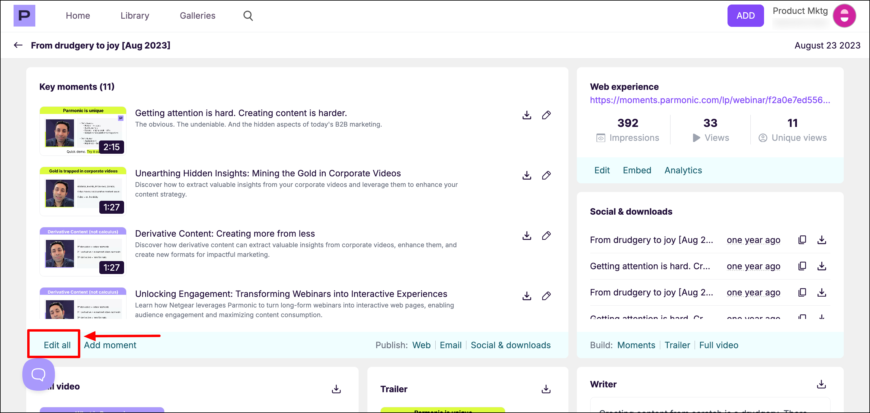 Step 2: Click on EDIT ALL under the Key moments module to edit the moments experience.