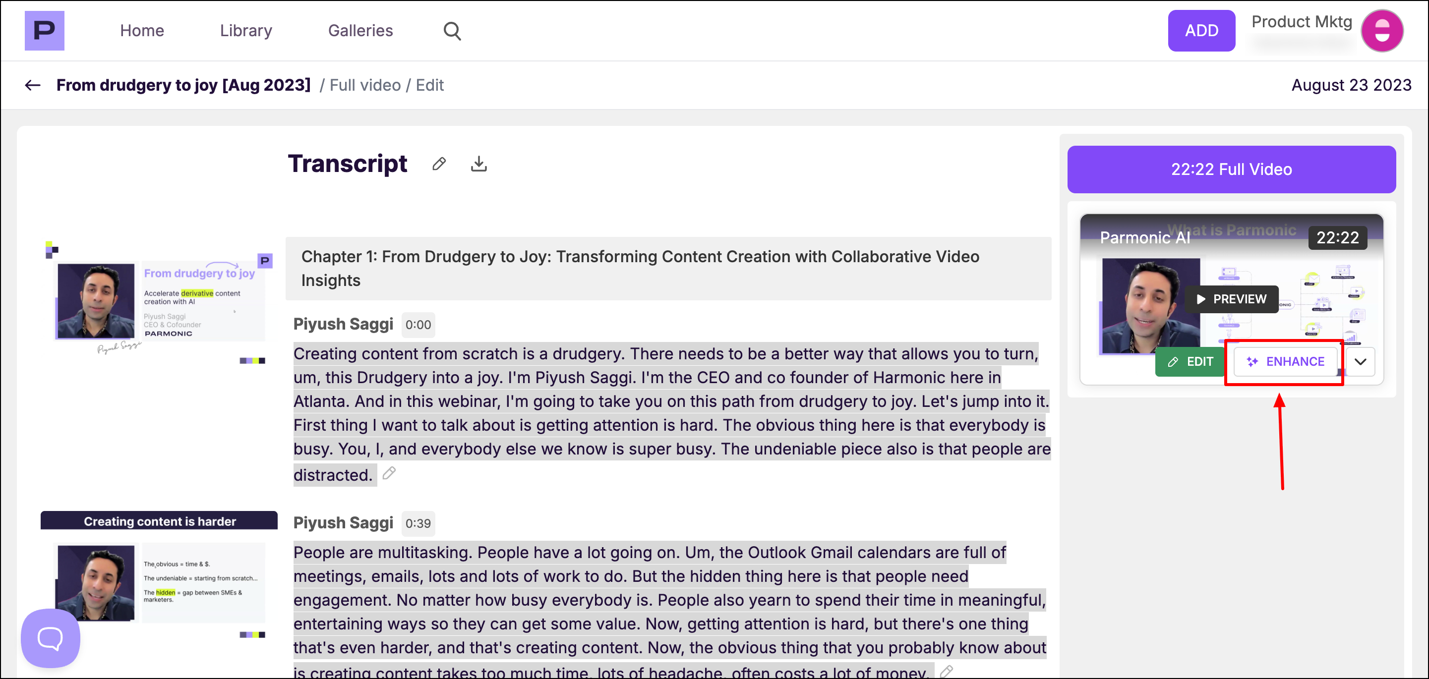 Step 3: Go to the moment you want to add an overlay to and click the ENHANCE button.