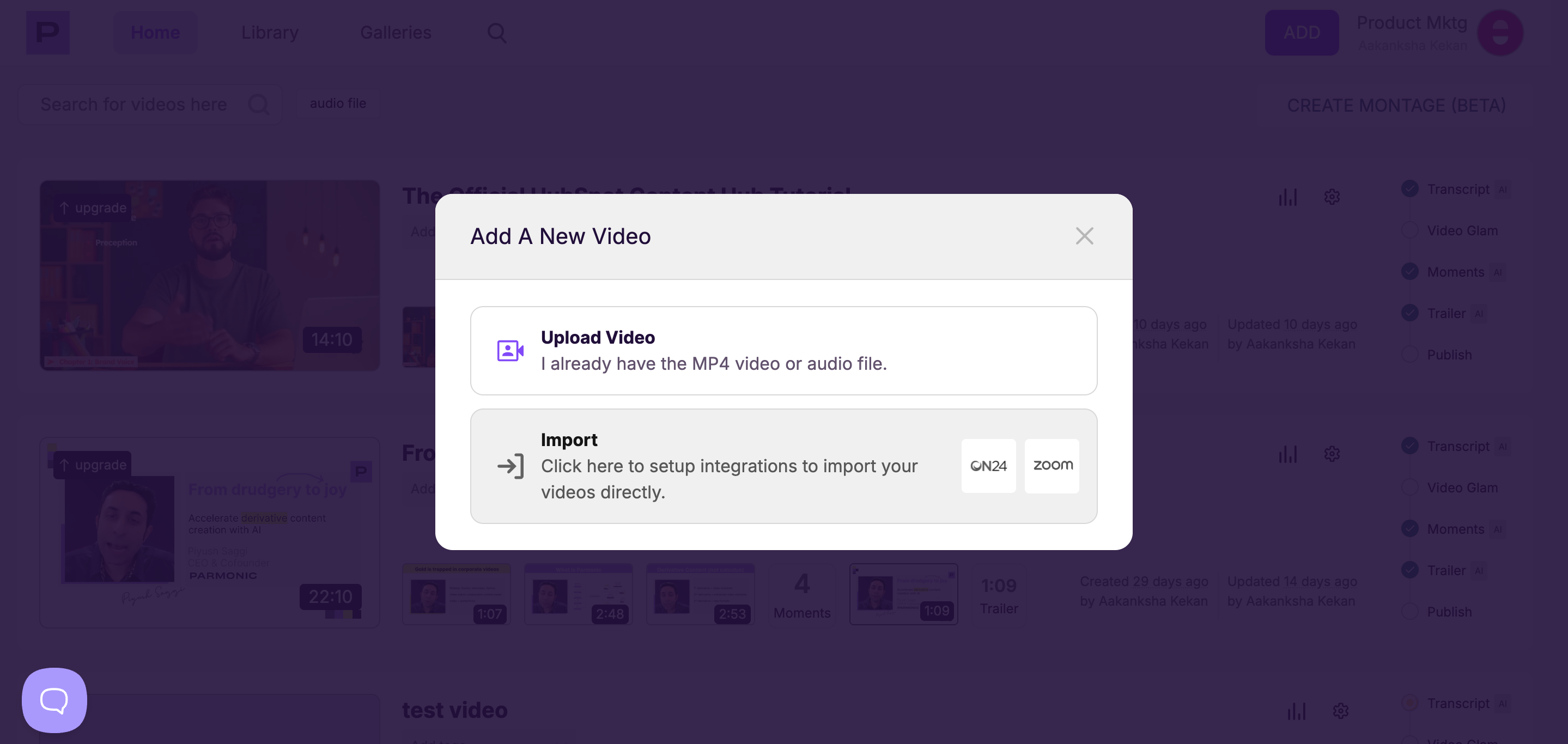 Once everything is set up, you'll see a new Webinar Upload window with a new option to Import directly from On24, streamlining your workflow.
