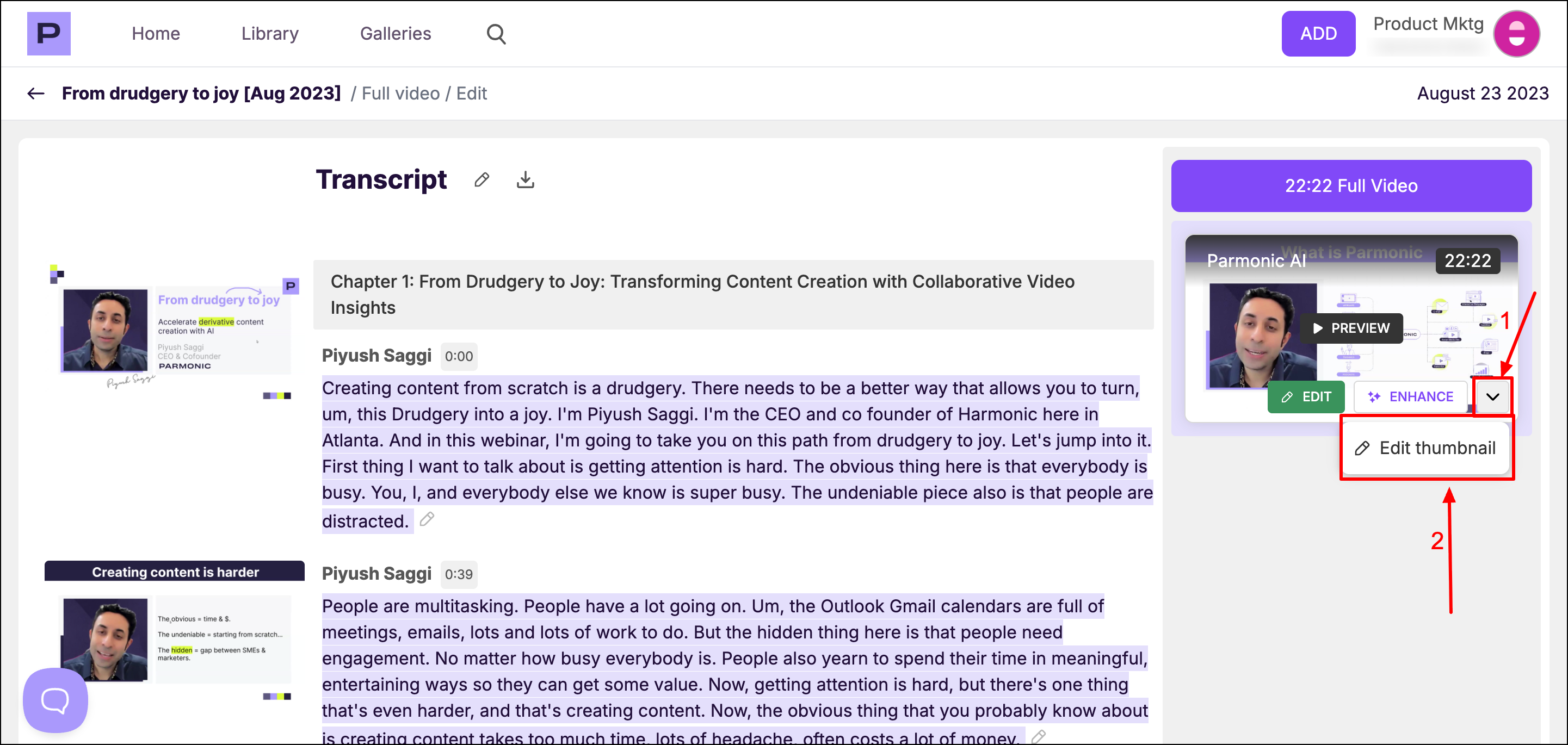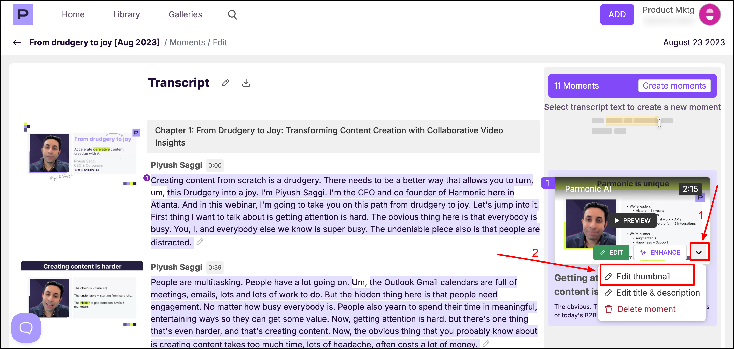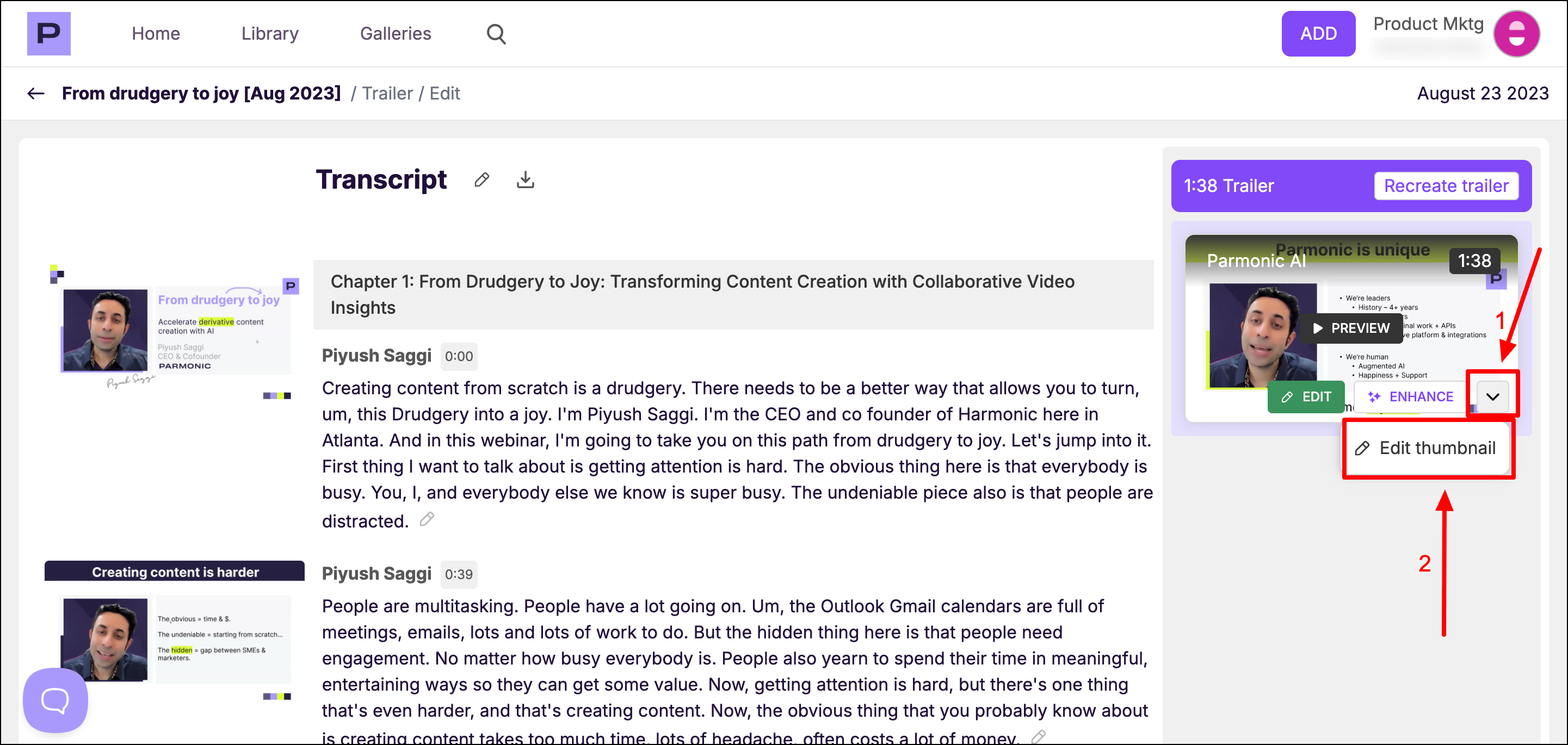 Customizing thumbnails in Parmonic is easy. Whether you're updating thumbnails for moments, trailers, or full videos, just follow the steps below.