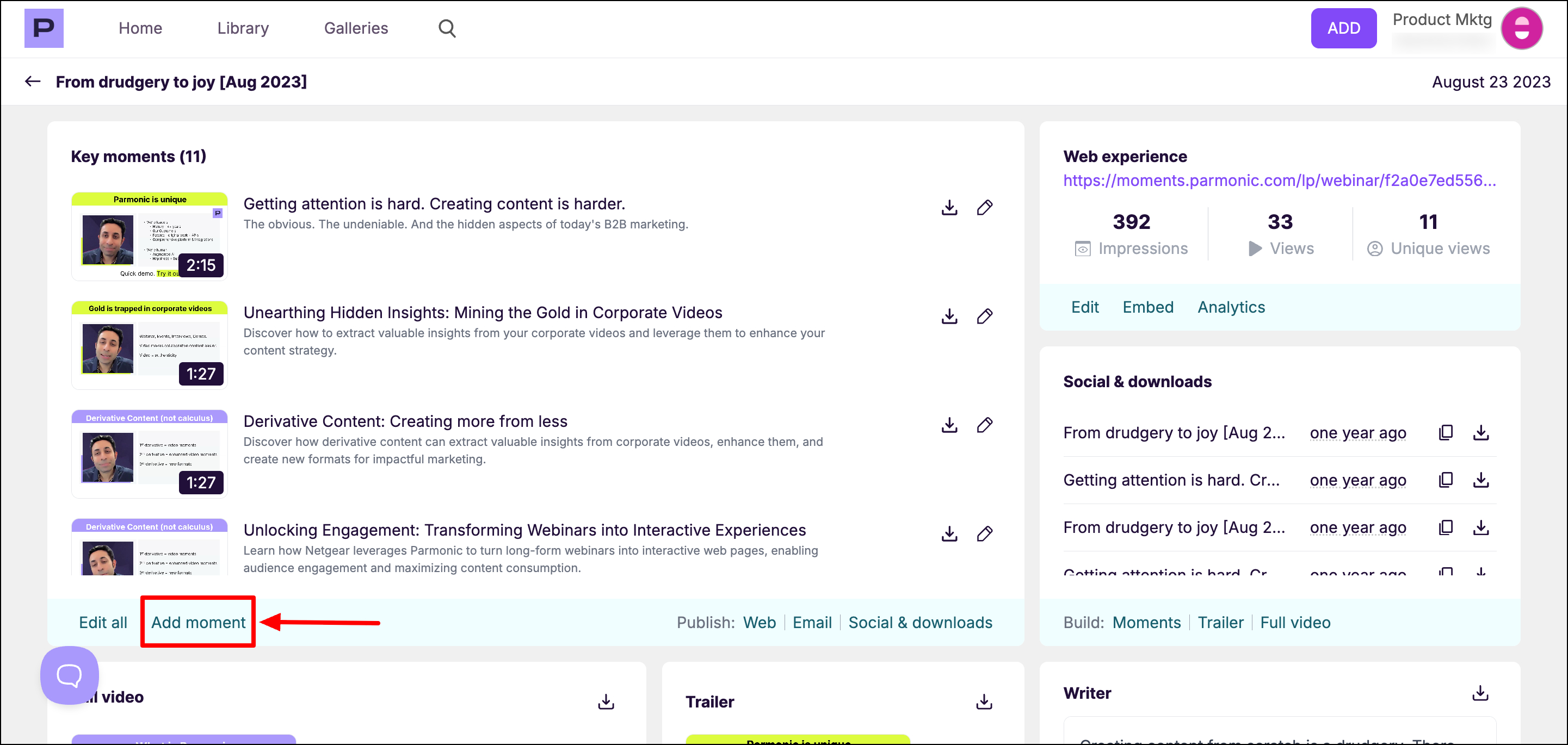 Parmonic's AI automatically generates key moments from your video and lets you edit them as needed.
