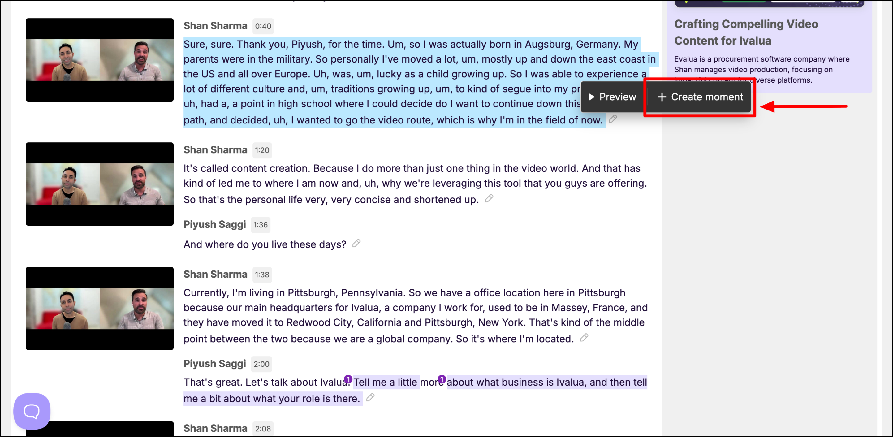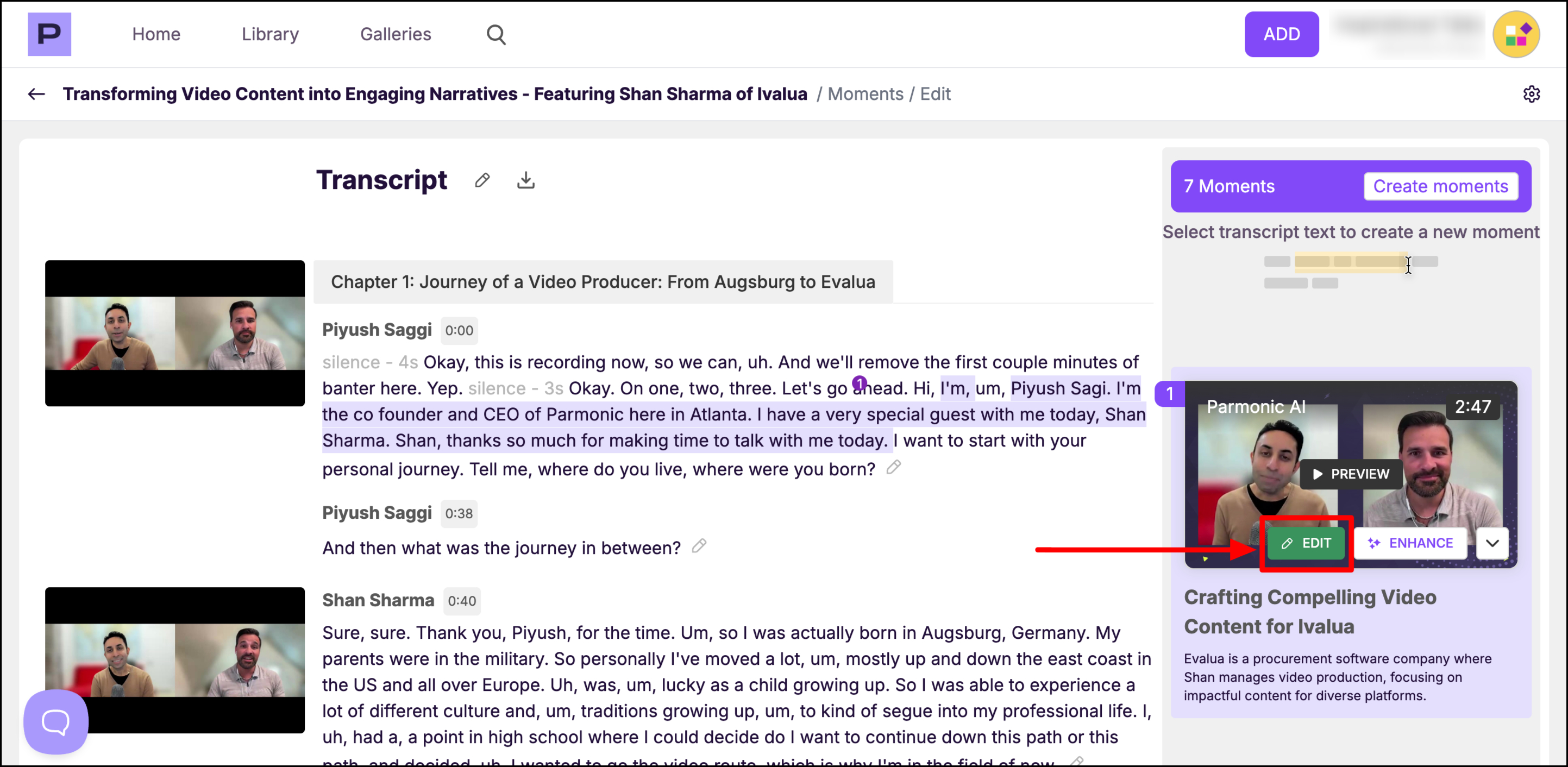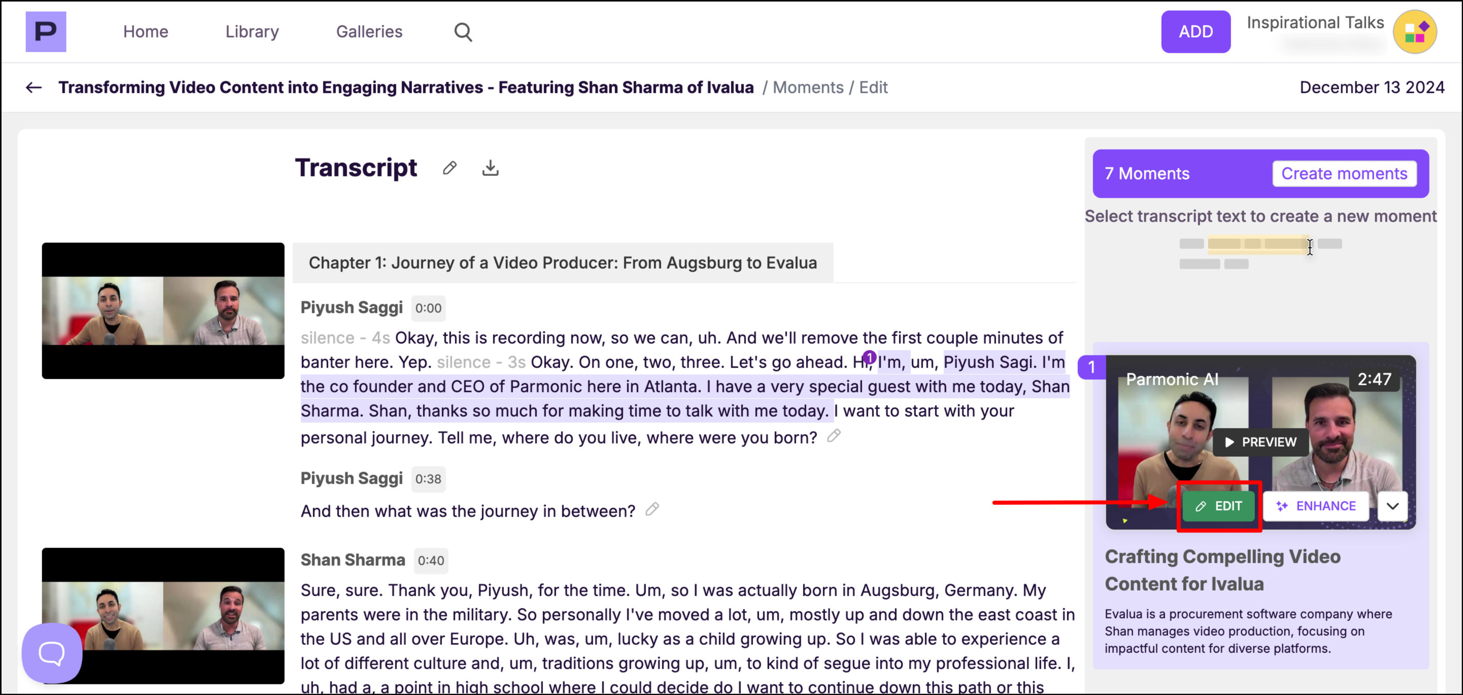 Your team just hosted a 60-minute panel webinar. The recording is packed with valuable insights, but it also has long-winded answers, small talk, and plenty of fluff. With Parmonic’s Make it Concise feature, you can instantly cut out the non-essential parts from your video.