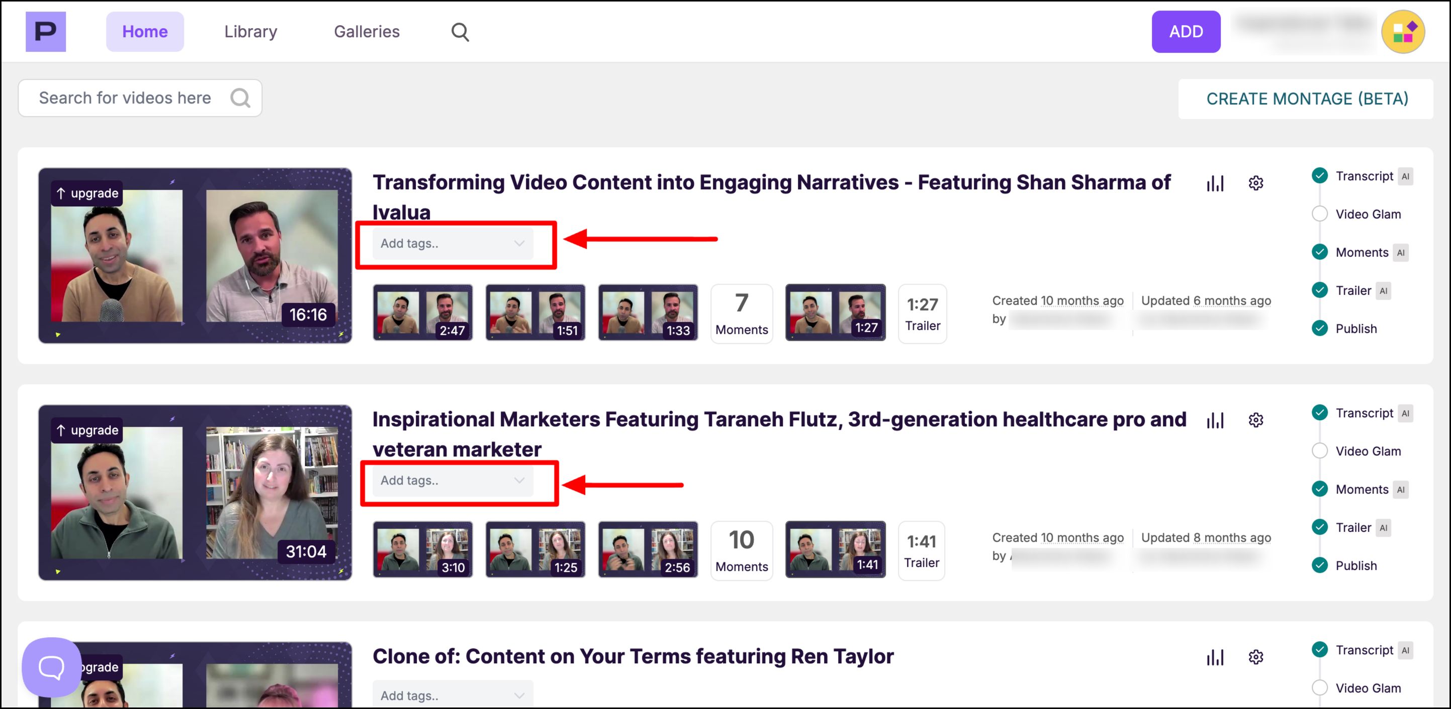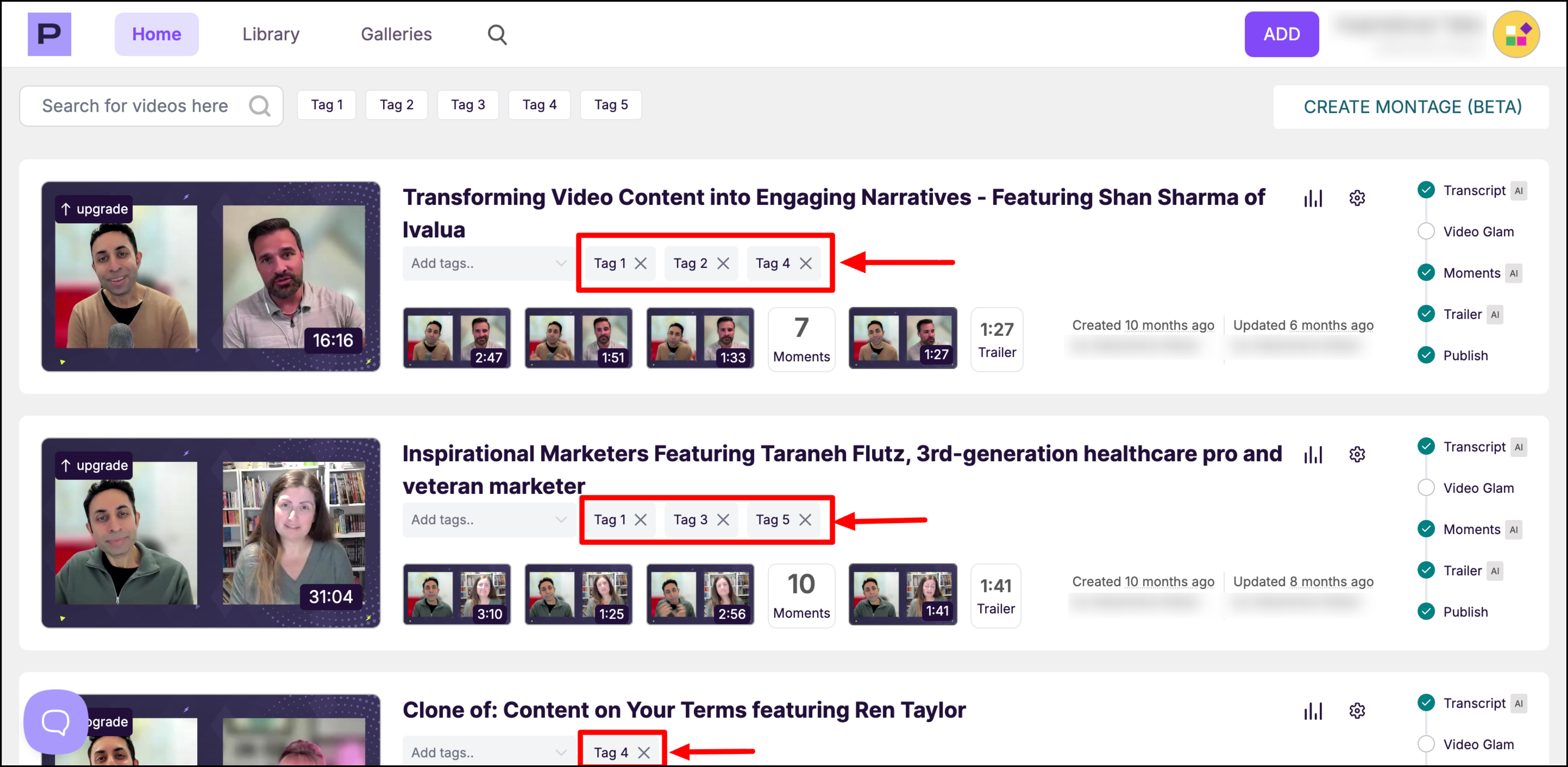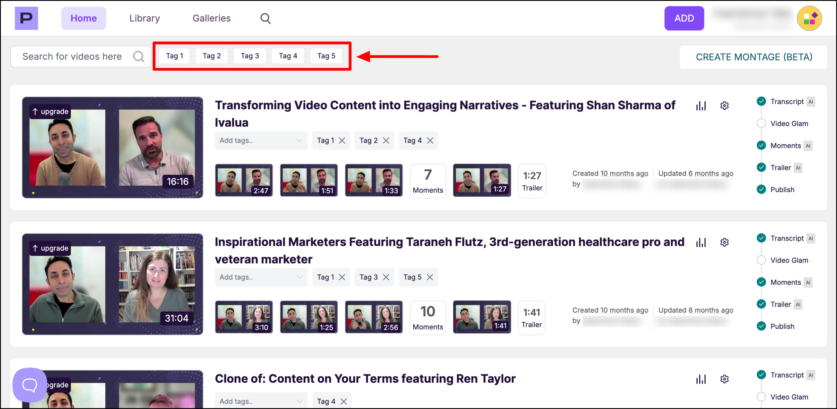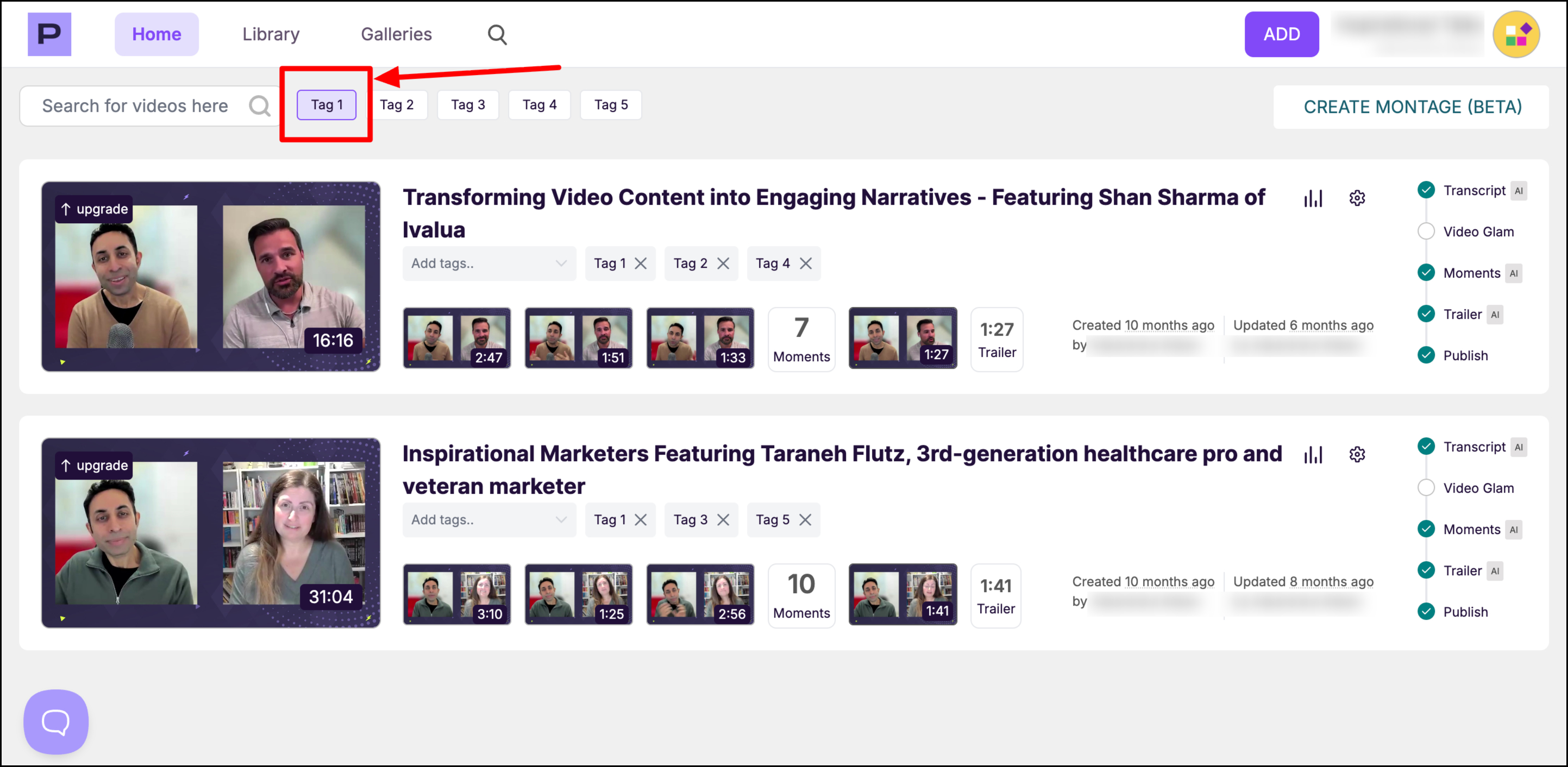 To use this feature, open a video, go to the Tags section, and enter your desired tag names. Once added, you can filter or search by tags to quickly find the webinars you need.