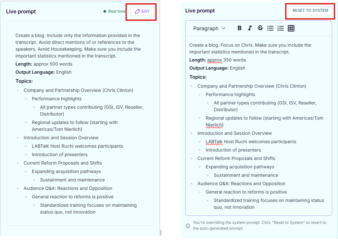Tip: Narrow topics lead to clearer and more actionable blogs and using related videos with overlapping themes produce a stronger, more cohesive output.