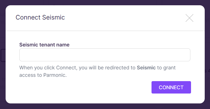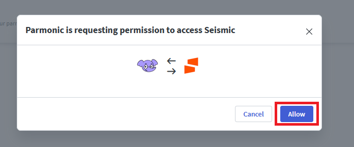 Step 2: Click on the Connect button below Seismic and follow the instructions. You will be redirected to Seismic to authorize Parmonic.