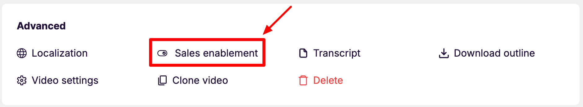 Step 2: Scroll down in the video dashboard and click on the Sales Enablement button.
