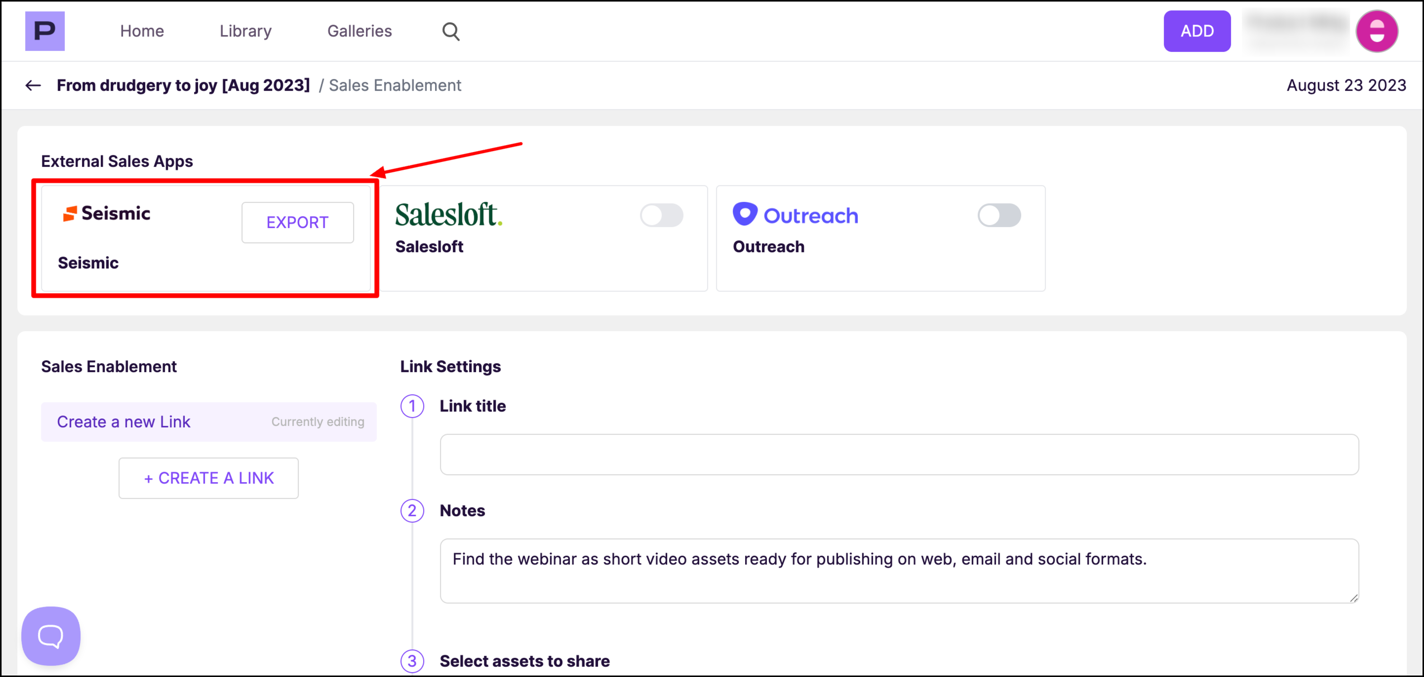 The Seismic integration allows Parmonic users to export moment and trailer MP4s into a Seismic teamsite. Seismic users can then use these in Seismic
